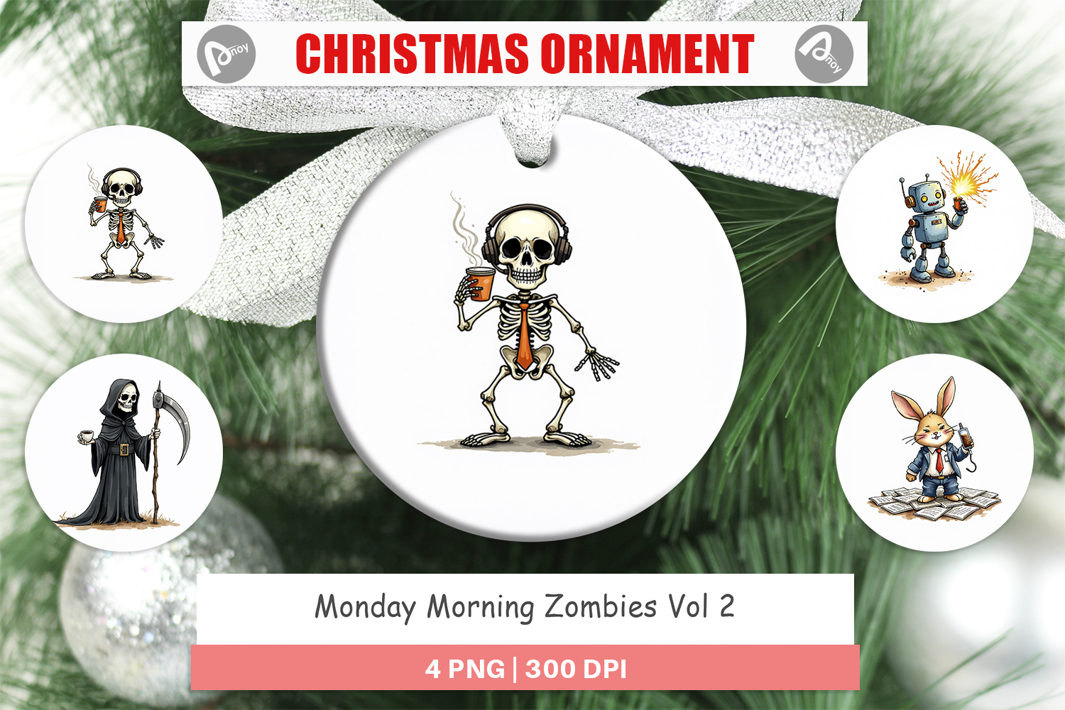 Sublimation Designs Funny Office Gift Diy Ornament Gift For Coworker Ornament Design Png Printable Christmas Gift Round Ornament Sublimation Monday Morning Zombie Office Coffee Humor Funny Zombie Ornament