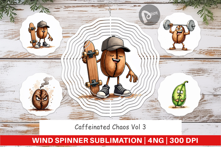 Sublimation Designs Wind Spinner Sublimation Sublimation Spinner Design Diy Wind Spinner Coffee Character Png Garden Decor Gift Printable Outdoor Decor Sarcastic Coffee Bean Funny Coffee Gift Caffeinated Chaos Art