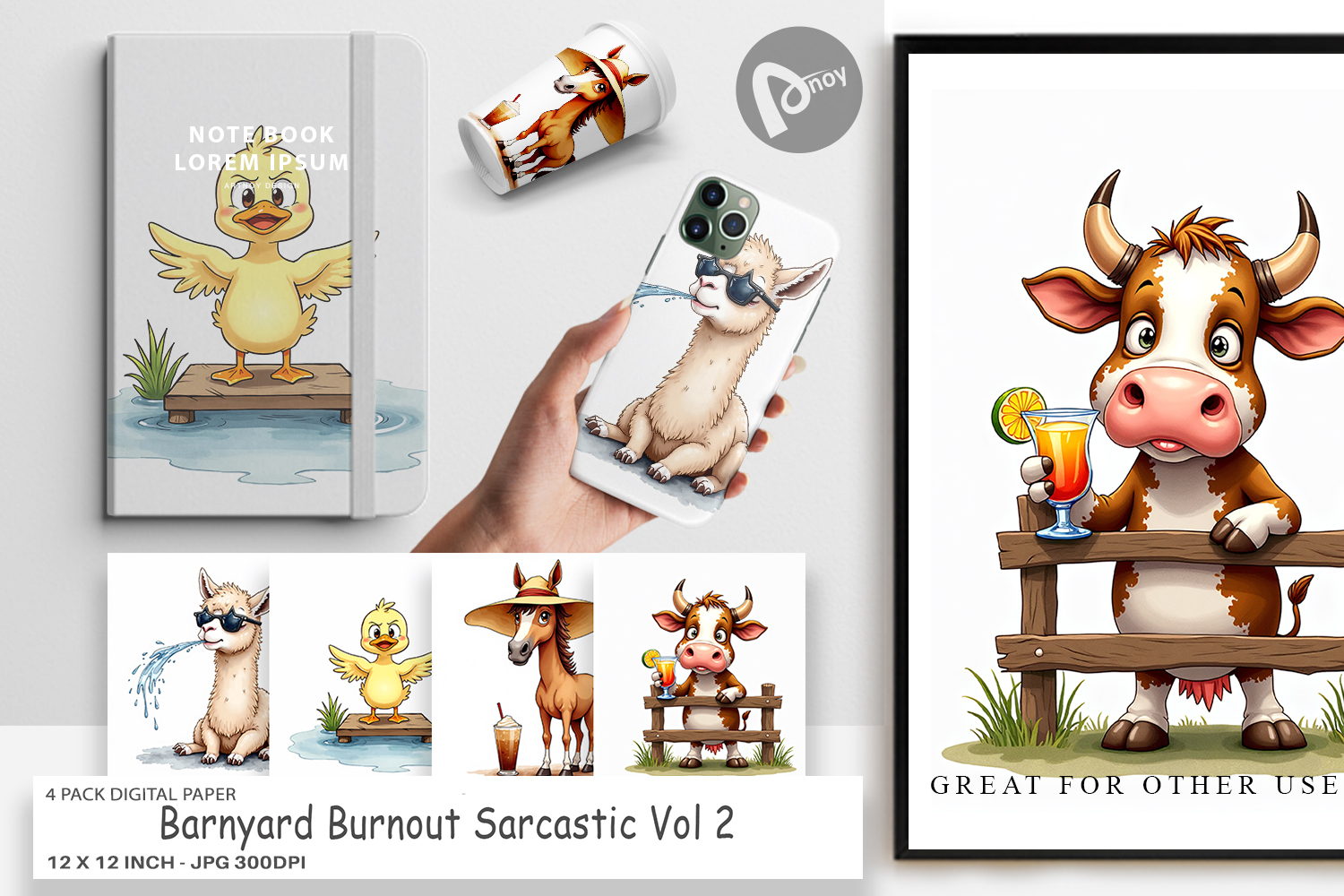 Digital Background Printable Scrapbook Paper Digital Paper Bundle Scrapbook Page Junk Journal Supplies Sublimation Paper Background Crafter Gift Idea Barnyard Burnout Theme Sarcastic Summer Background Funny Animal Paper