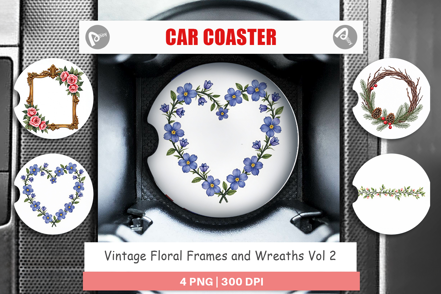 Floral Wreaths Gift For Her Wedding Gift Idea Sublimation Designs Car Coaster Png Car Coaster Sublimation Vintage Floral Frames Diy Car Accessory Printable Gift Png Vintage Flower Decor