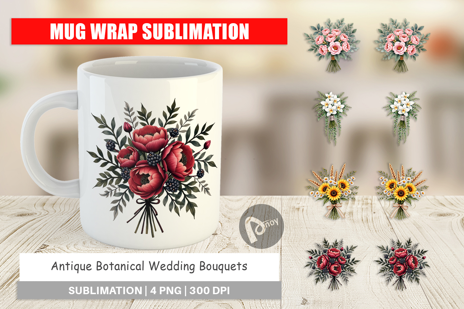 Botanical Wedding Coffee Cup Design Sublimation Designs Gift For Bride Mug Sublimation Design Mug Wrap Printable Mug Png Antique Botanical Mug Wedding Bouquet Mug Wedding Gift Mug