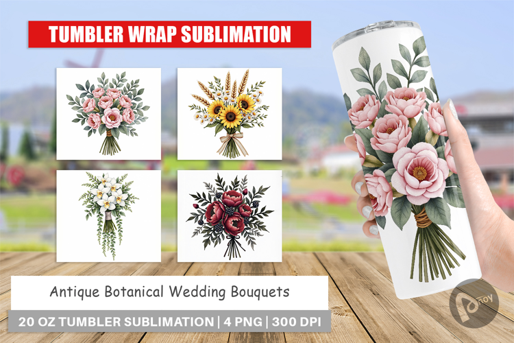 Wedding Bouquets Botanical Wedding Sublimation Designs Bridal Shower Gift Gift For Bride Antique Botanical Tumbler Sublimation Design Tumbler Wrap Png Diy Tumbler Wedding Tumbler Wrap
