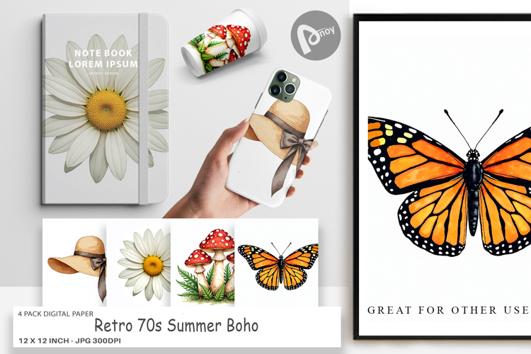 Similar Design Products to Retro 70s Summer Boho Digital Paper