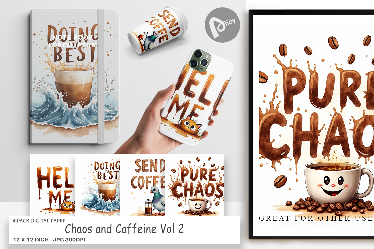 Similar Design Products to Chaos Caffeine Quotes Digital Paper