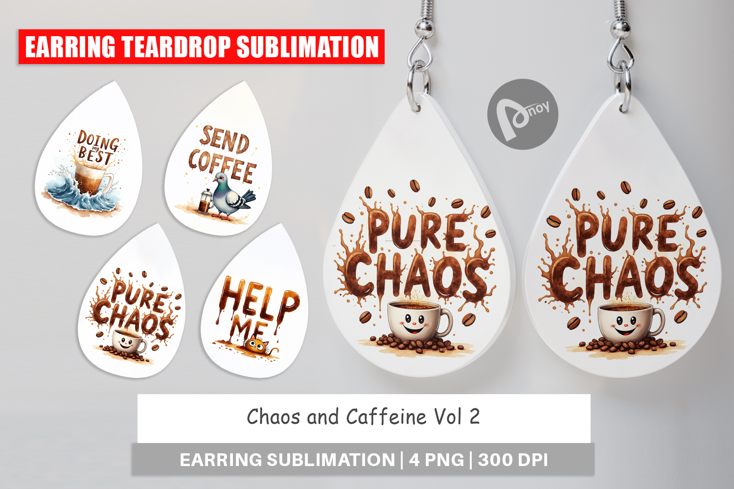 Gift For Coworker Earring Sublimation Designs Sublimation Earrings Png Printable Earring Design Diy Jewelry Idea Funny Statement Earring Office Humor Gift Sarcastic Earrings Chaos Caffeine Quotes Funny Coffee Jewelry