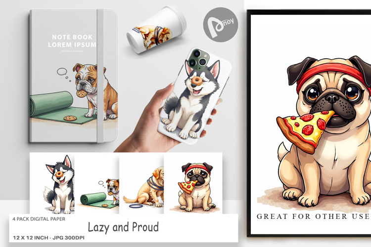 Printable Scrapbook Paper Digital Paper Bundle Junk Journal Page Sublimation Paper Background Diy Craft Paper Craft Paper Download Anti Fitness Dog Art Lazy Dog Background Funny Dog Theme Dog Lover Background