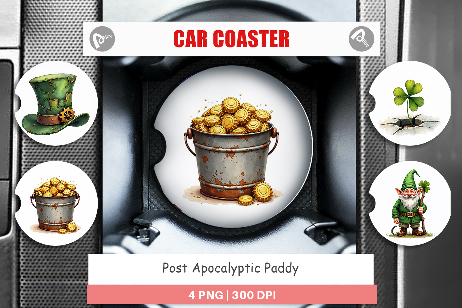Sublimation Designs St Patricks Day Gift Diy Gift Idea Car Coaster Png Car Coaster Sublimation Printable Car Accessory Post Apocalyptic Design Wasteland St Patricks Paddy Wasteland Coaster Fallout Theme Gift