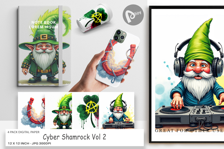 Similar Design Products to Cyber-Shamrock Neon Punk Digital Paper
