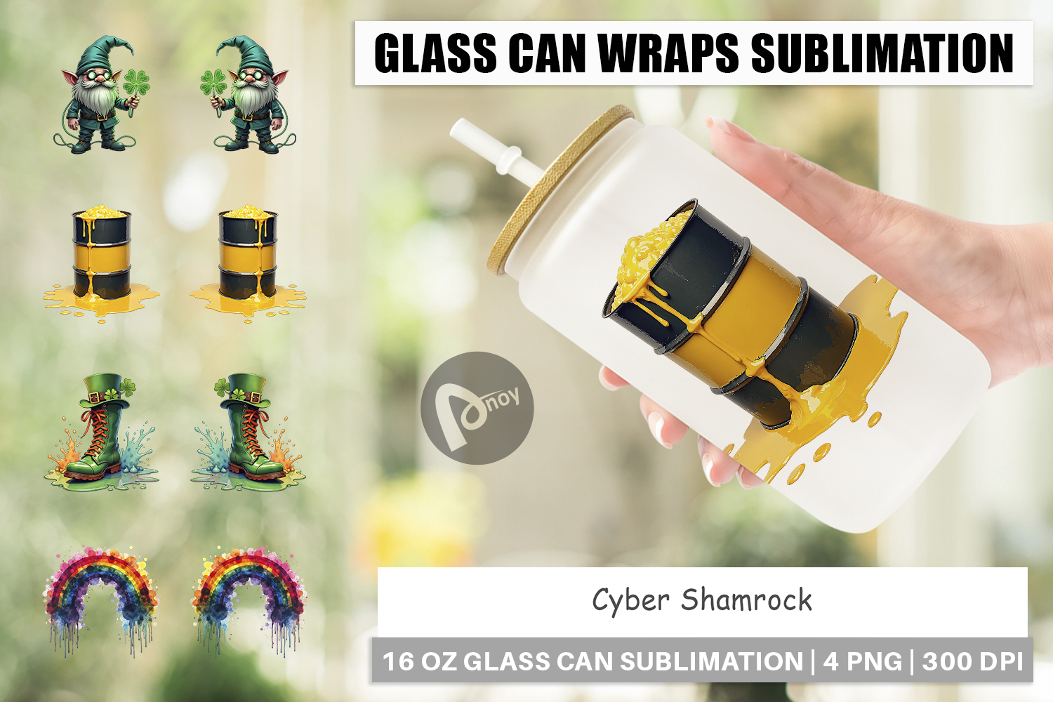 Sublimation Designs Iced Coffee Cup Libbey Glass Sublimation Glass Can Wrap Png Printable Cup Wrap Diy Beer Can Glass Cyber Shamrock Wrap Neon Punk Glass Can St Patricks Day Glass Punk Rock Gift Idea
