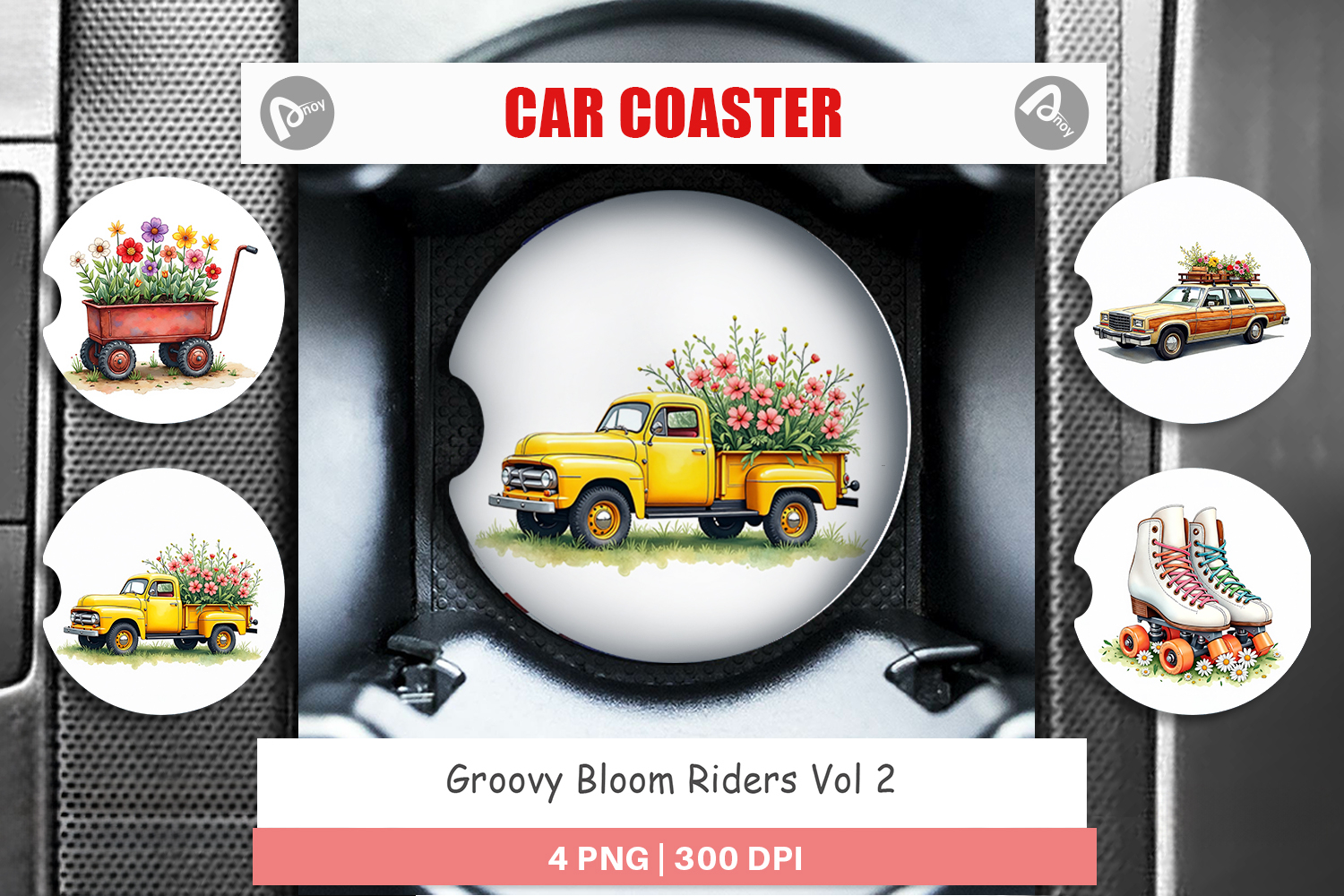 Groovy Bloom Riders 70s Car Coaster example image 1