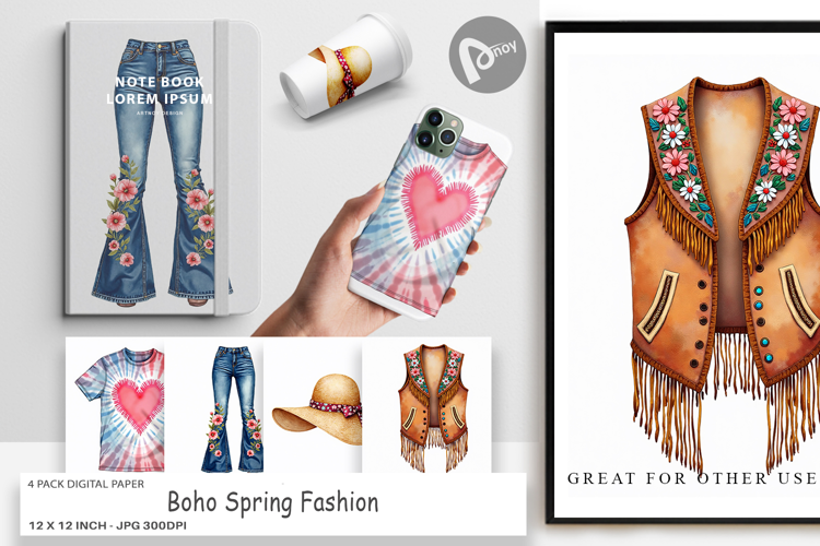 Similar Design Products to Boho Spring Fashion 70s Digital Paper