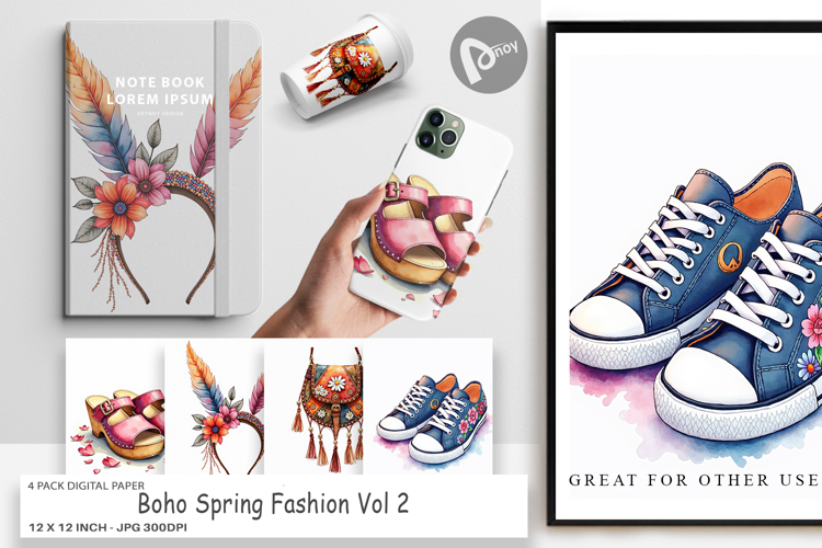 Similar Design Products to Boho Spring Fashion 70s Digital Paper