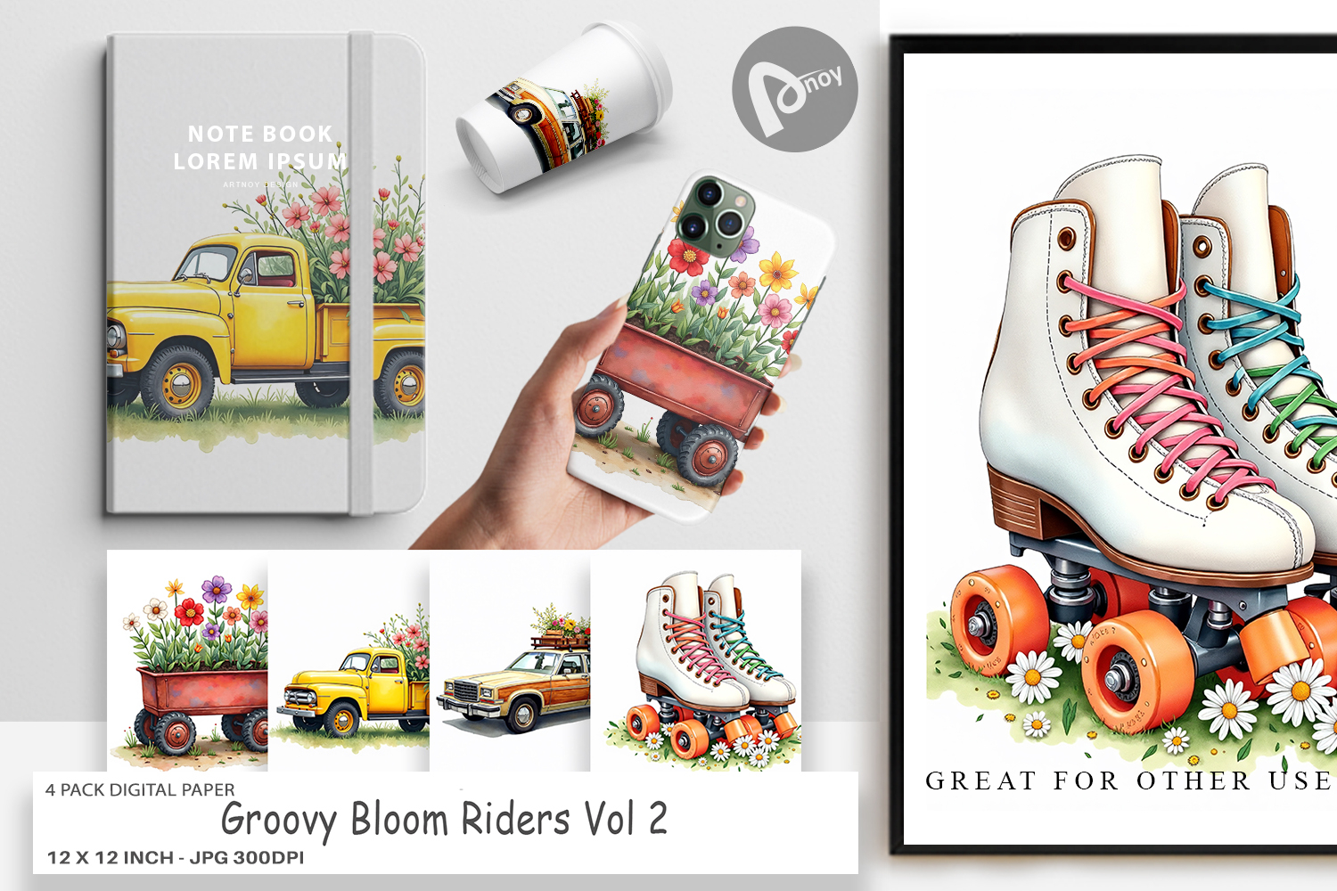 Similar Design Products to Groovy Bloom Riders 70s Digital Paper