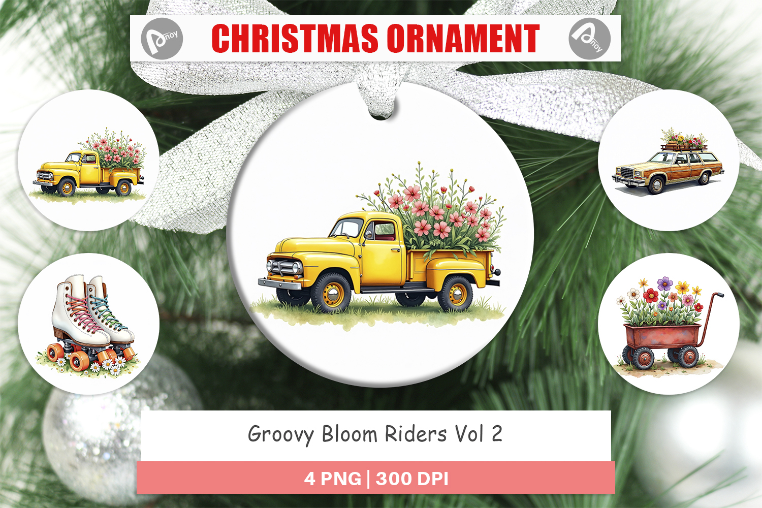 Sublimation Designs Diy Holiday Decor Ornament Design Png Round Ornament Sublimation Printable Ornament Png Hippie Christmas Gift Groovy Bloom Riders 70s Floral Transport Gift For Flower Lover Retro Flower Ornament
