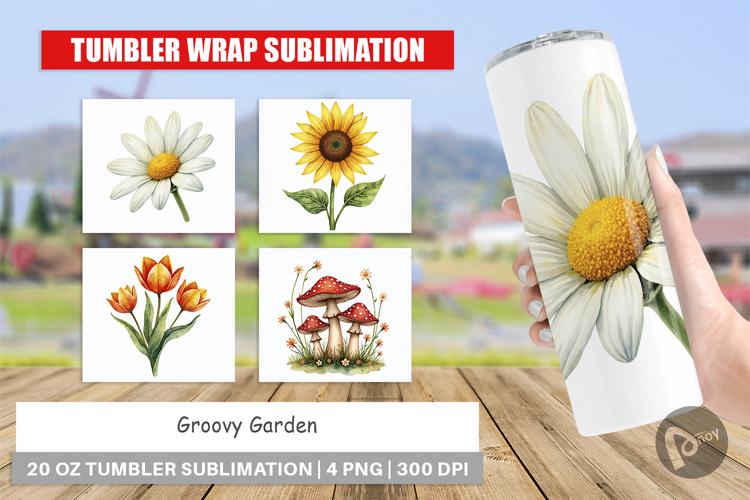 Sublimation Designs Gift For Gardener Tumbler Sublimation Design Tumbler Wrap Png Retro Skinny Tumbler Printable Tumbler Wrap Flower Power Tumbler Diy Tumbler Project 70s Retro Florals Groovy Garden Wrap