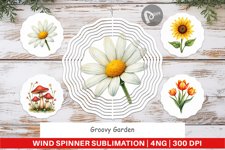 Sublimation Designs Gift For Gardener Wind Spinner Sublimation Sublimation Spinner Design Diy Wind Spinner Printable Spinner Png 70s Retro Florals Groovy Garden Theme Flower Power Spinner Retro Garden Gift