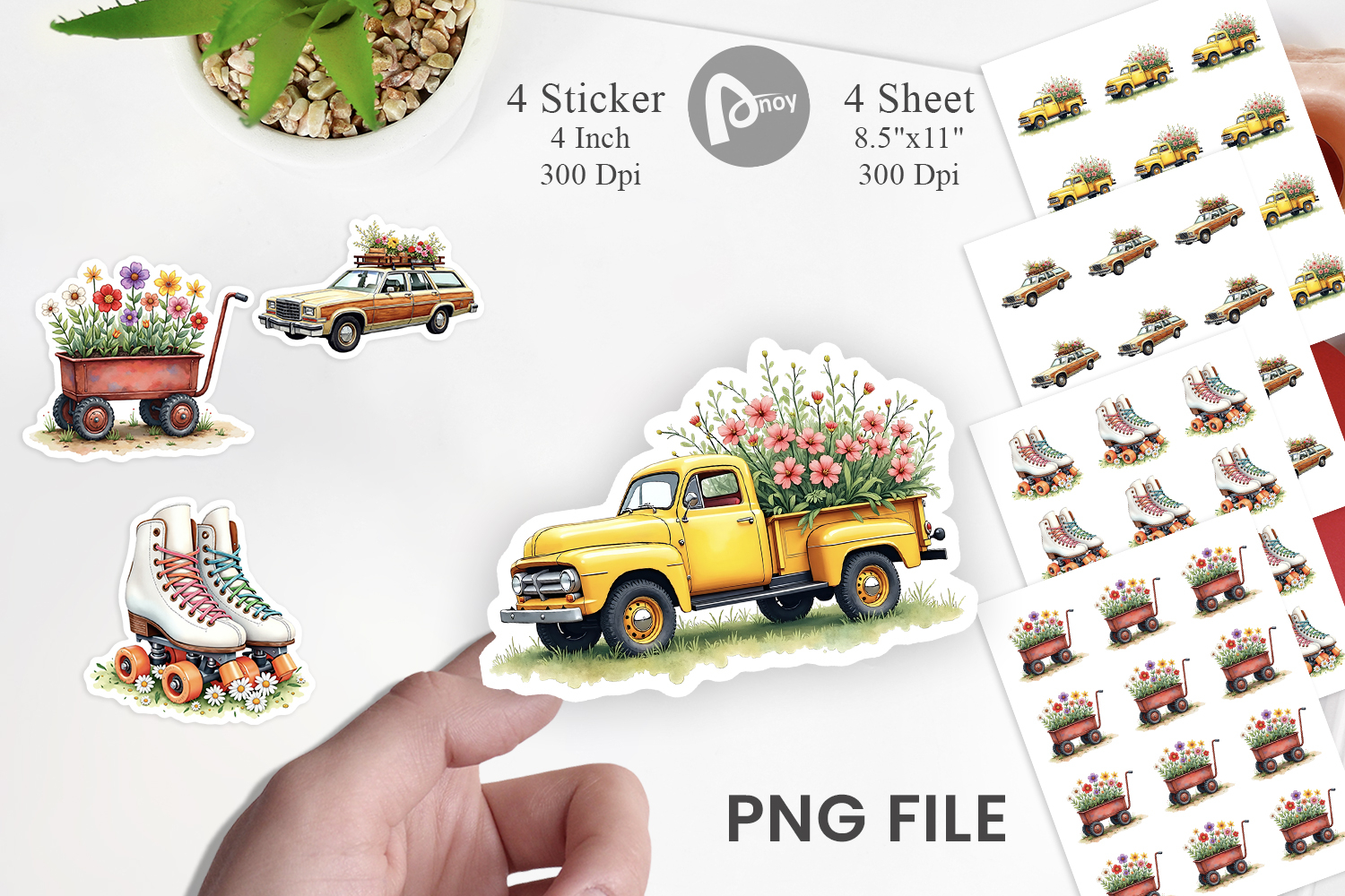 Planner Stickers Journal Stickers Printable Sticker Sheet Printable Sticker Png Retro Flower Sticker Diy Planner Supplies Groovy Bloom Riders 70s Floral Transport Gift For Flower Lover Hippie Journal Sticker
