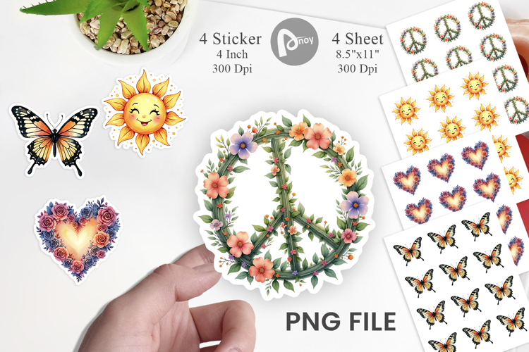 Planner Stickers Gift For Her Journal Stickers Printable Sticker Sheet Printable Sticker Png Retro Hippie Sticker Peace Sign Sticker Diy Planner Supplies Peace And Petals 70s Symbols Sticker