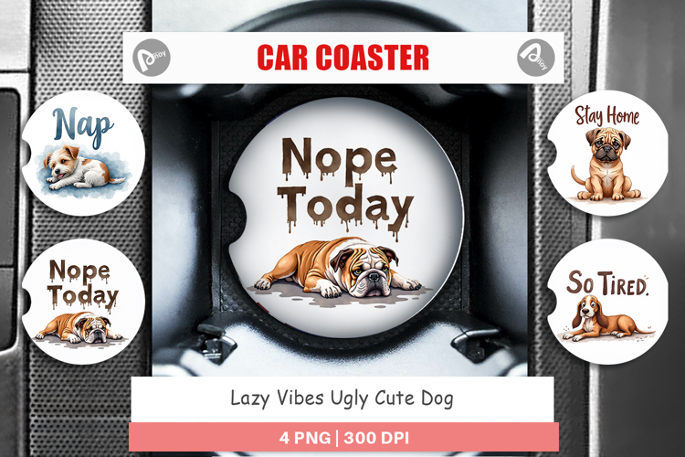 Sublimation Designs Car Coaster Png Car Coaster Sublimation Dog Owner Gift Funny Dog Quotes Car Accessory Png Sarcastic Dog Quote Printable Gift Png Ugly Cute Dog Lazy Vibes Dog