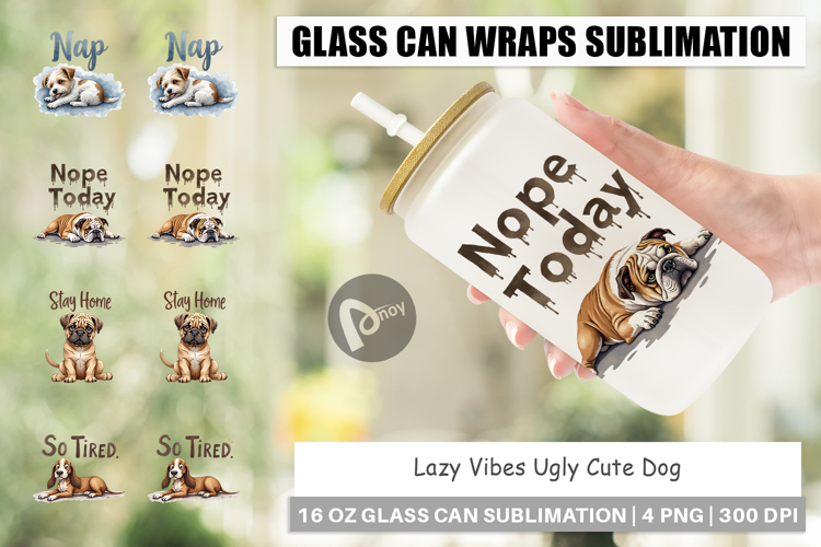 Sublimation Designs Pet Lover Gift Dog Owner Gift Funny Dog Quotes Libbey Glass Sublimation Glass Can Wrap Png Printable Glass Can Ugly Cute Dog Lazy Vibes Dog Sarcastic Iced Coffee