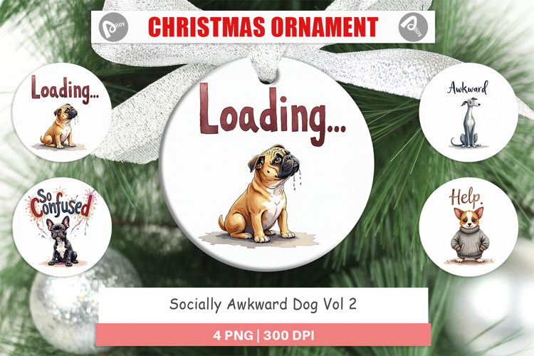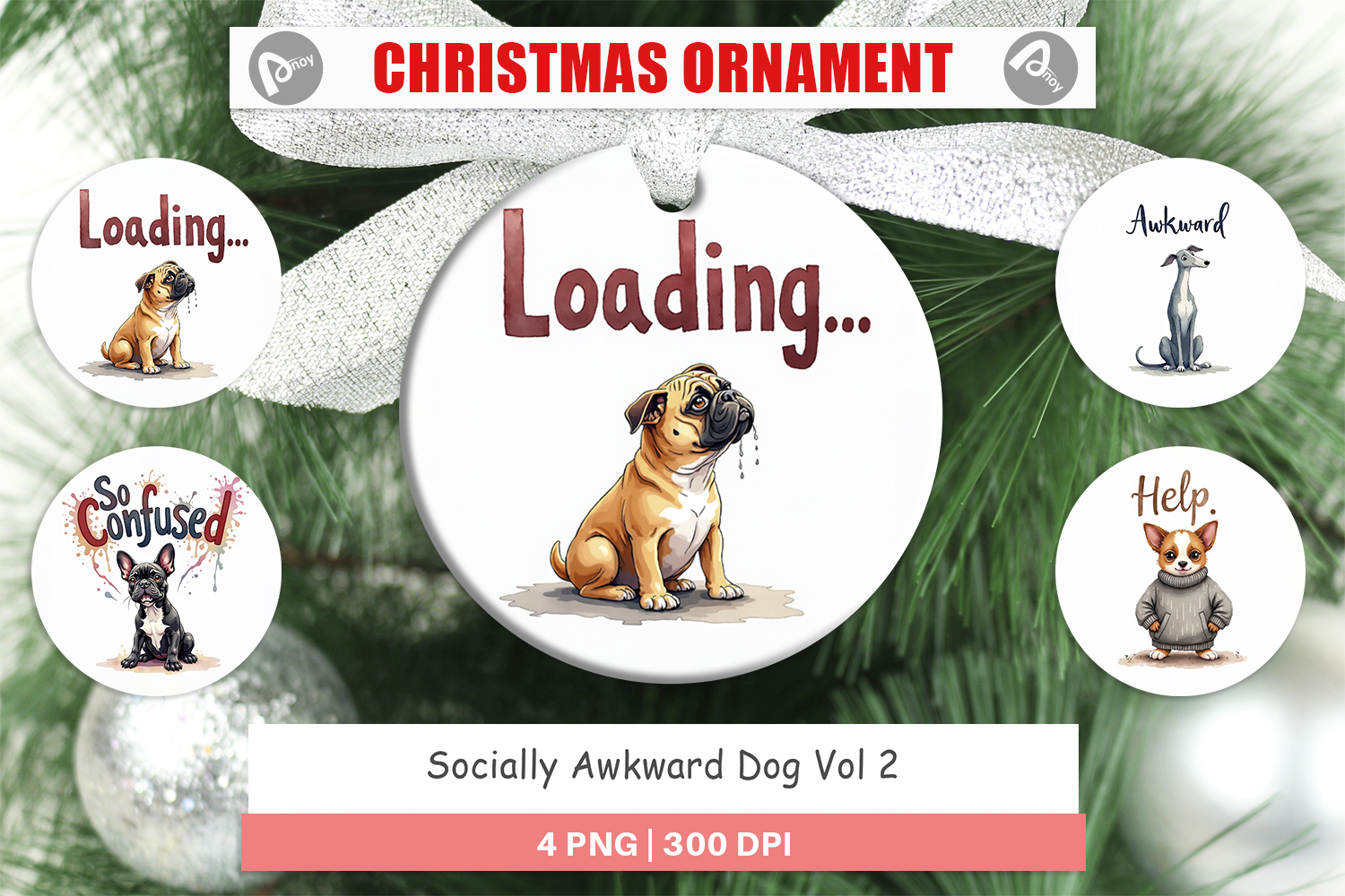 Christmas Ornament Dog Lover Gift Sublimation Designs Funny Dog Quotes Ornament Design Png Printable Ornament Round Ornament Sublimation Pet Owner Humor Socially Awkward Dog Introvert Dog Gift