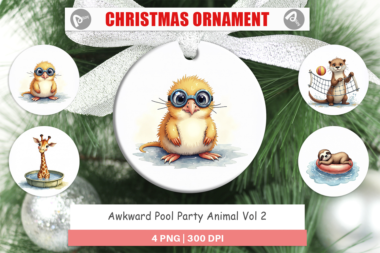 Sublimation Designs Diy Gift Idea Ornament Design Png Printable Ornament Round Ornament Sublimation Quirky Christmas Png Pool Party Theme Funny Summer Gift Awkward Animal Art Holiday Decor Gift