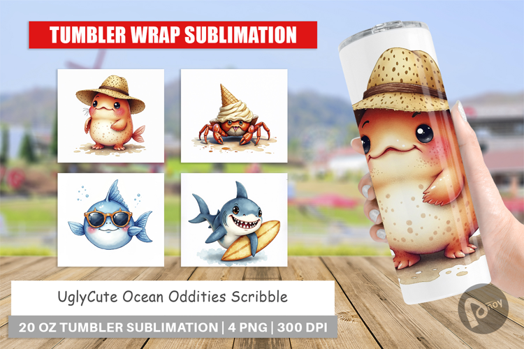 Sublimation Designs Tumbler Sublimation Design Tumbler Wrap Png Skinny Tumbler 20oz Printable Tumbler Diy Craft Project Scribble Sea Life Funny Ocean Gift Uglycute Ocean Wrap Ocean Oddities Art