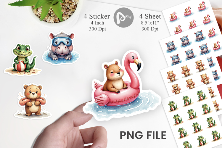 Scrapbook Elements Planner Stickers Journal Stickers Laptop Decal Gift For Friend Printable Sticker Sheet Pool Party Theme Diy Sticker Craft Funny Summer Sticker Awkward Animal Png