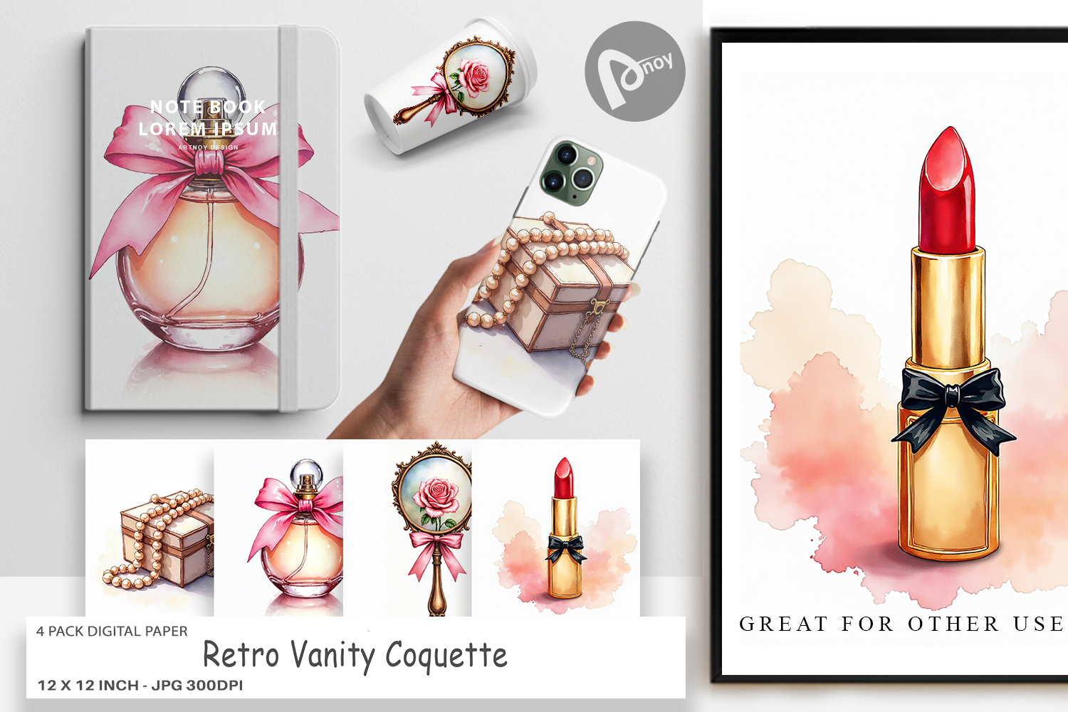 Digital Download Printable Scrapbook Paper Digital Paper Bundle Gift For Crafter Junk Journal Kit Sublimation Paper Background Coquette Aesthetic Retro Vanity Design Vintage Makeup Graphic Coquette Vanity Bg