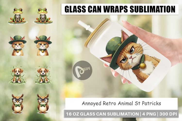 St Patricks Day Gift Funny Animal Png Retro St Patricks Libbey Can Wrap Libbey Glass Sublimation Glass Can Wrap Png Printable Can Wrap Diy Glass Can Sarcastic Iced Coffee Annoyed Animal Wrap