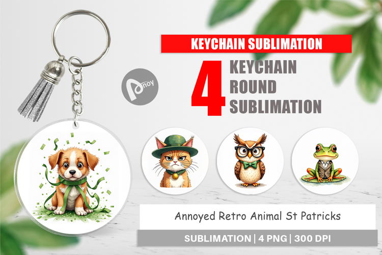 St Patricks Day Gift Diy Gift Idea Keychain Sublimation Retro St Patricks Printable Keychain Round Keychain Png Bag Tag Png Funny Animal Keychain Annoyed Animal Design Sarcastic St Patricks