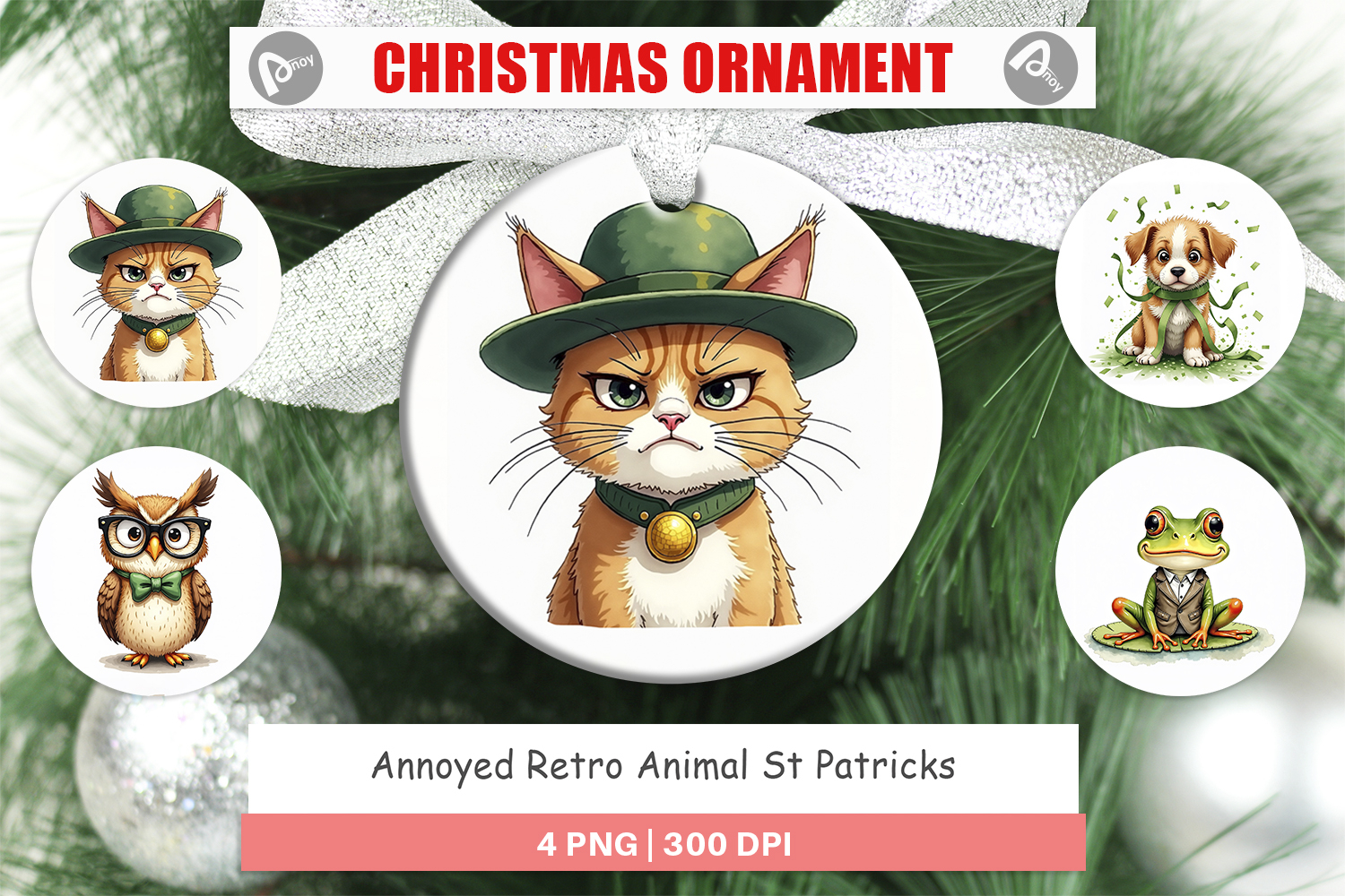 Christmas Ornament St Patricks Day Gift Diy Holiday Decor Retro St Patricks Ornament Design Png Printable Ornament Round Ornament Sublimation Funny Animal Ornament Annoyed Animal Design Sarcastic St Patricks