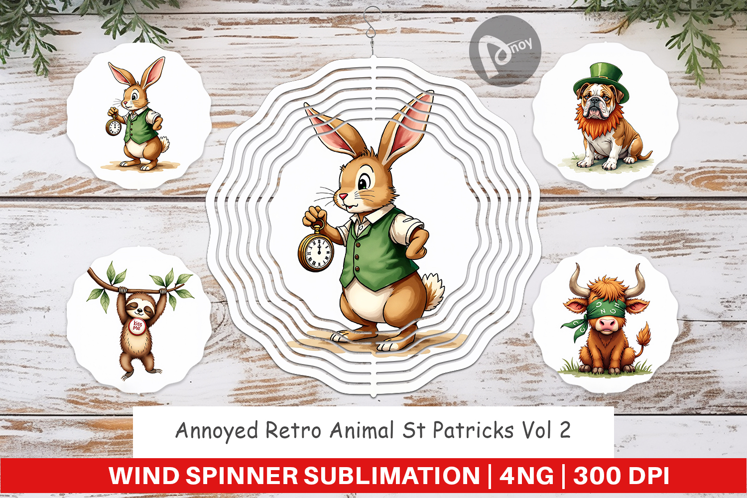 St Patricks Day Gift Retro St Patricks Outdoor Decoration Wind Spinner Sublimation Diy Garden Decor Sublimation Spinner Design Funny Animal Spinner Printable Spinner Png Annoyed Animal Design Sarcastic St Patricks