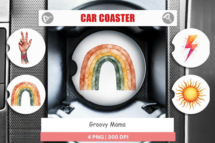 Groovy Mama Vintage Boho Car Coaster example image 1