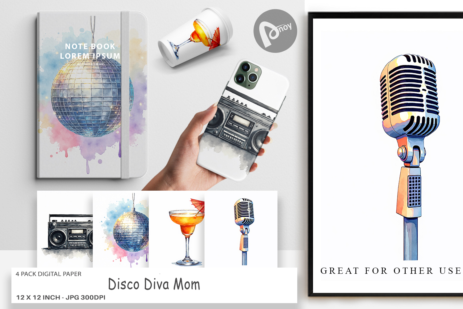 Digital Background Printable Scrapbook Paper Digital Paper Bundle Junk Journal Pages Craft Paper Design Diy Craft Supplies Sublimation Paper Background Disco Diva Mom Retro Disco Background Groovy Mom Paper