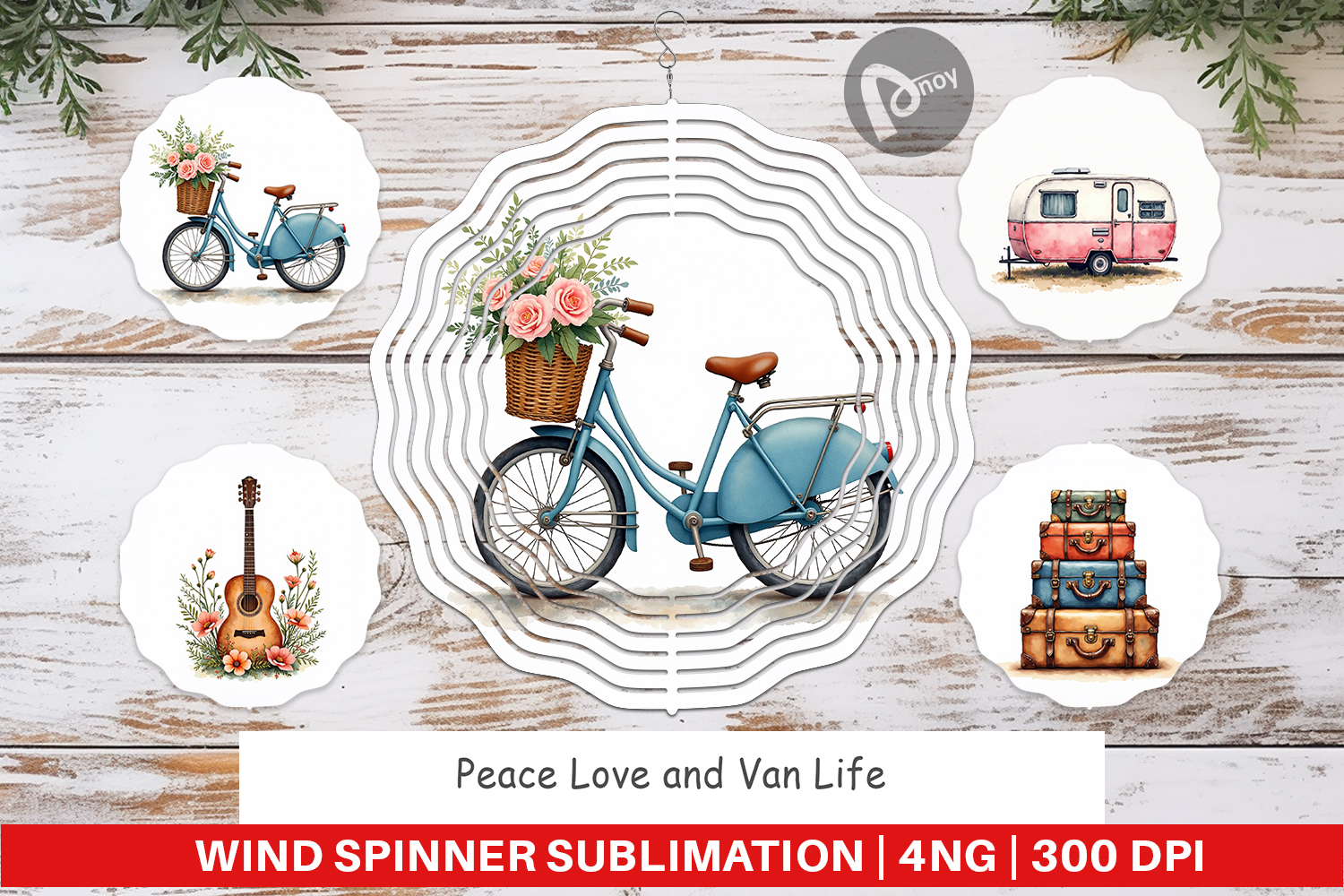 Sublimation Designs Wind Spinner Sublimation Gift For Traveler Sublimation Spinner Design Printable Garden Decor Boho Garden Decor Peace Love Van Life Road Trip Mom Gift Hippie Van Decor Outdoor Spinner Png