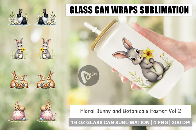 Gift For Her Sublimation Designs Diy Gift Idea Easter Bunny Wrap Libbey Glass Sublimation Glass Can Wrap Png Printable Glass Can Botanical Easter Theme Floral Bunny Glass Can Spring Floral Glass