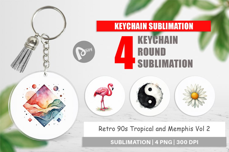 Sublimation Designs Keychain Sublimation Round Keychain Png Printable Gift Idea Diy Accessory Gift Retro 90s Tropical Memphis Design Theme 90s Summer Vibe Retro Aesthetic Gift 90s Nostalgia Gift