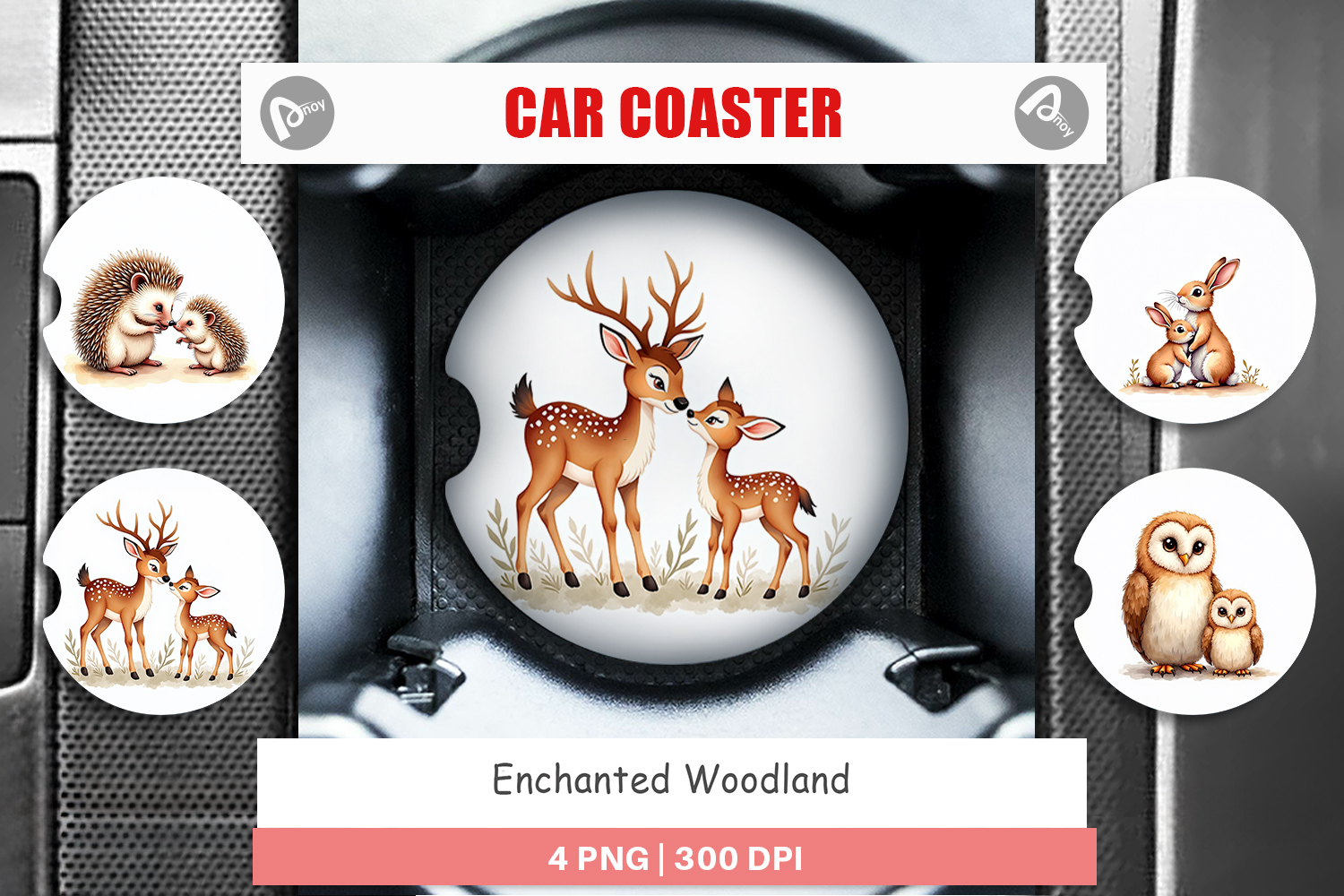Woodland Mom & Baby Animals Car Coaster example image 1
