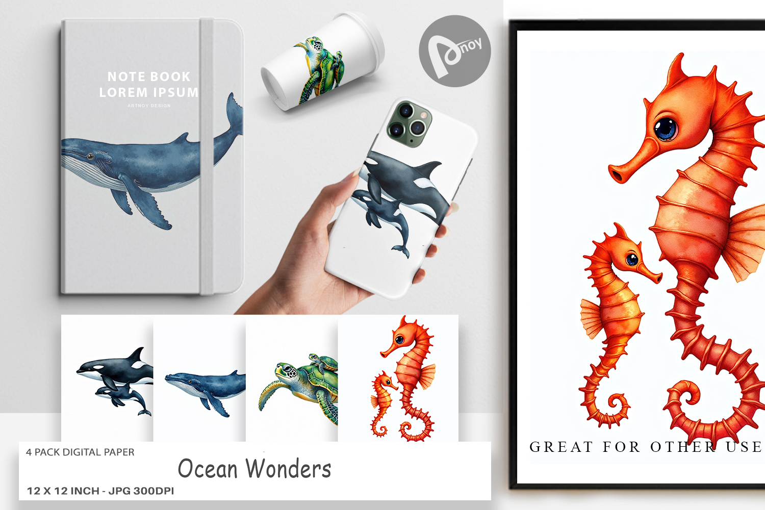 Digital Scrapbook Printable Scrapbook Paper Digital Paper Bundle Junk Journal Pages Sea Creature Art Sublimation Paper Background Marine Life Paper Nursery Sea Theme Ocean Wonders Background Underwater Craft Paper