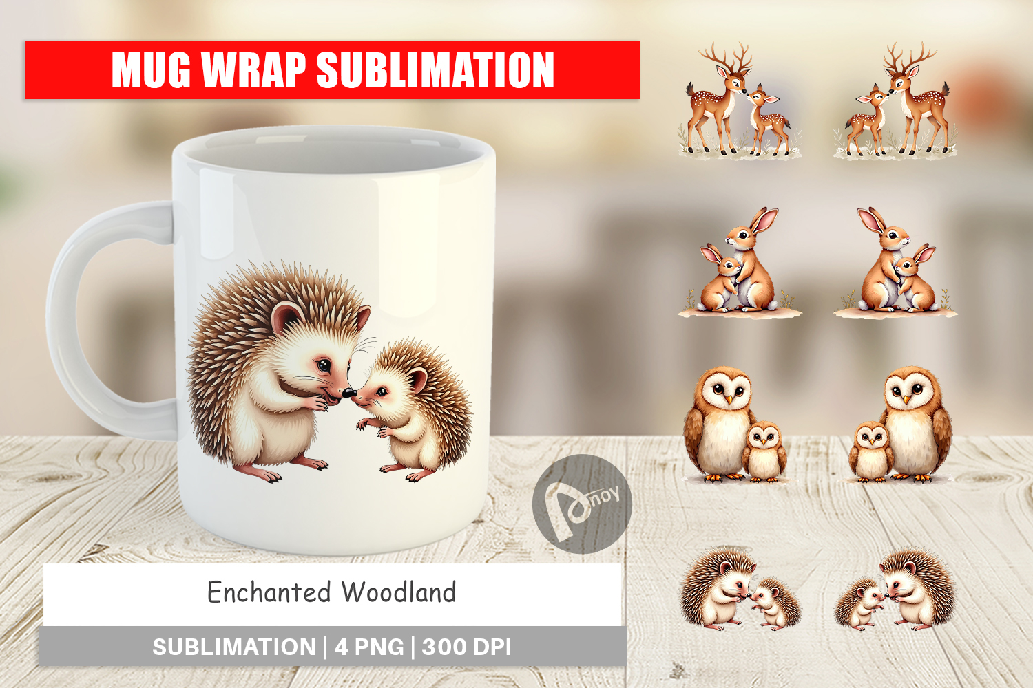 Woodland Mom Baby Animals Mug Wrap example image 1
