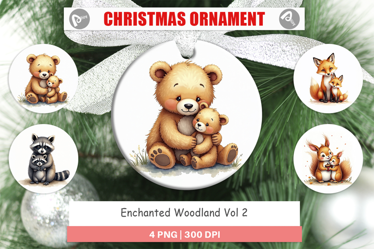 Baby's First Christmas Baby Shower Gift Sublimation Designs Forest Animal Art Ornament Design Png Round Ornament Sublimation Printable Ornament Png Enchanted Forest Theme Woodland Animal Ornament Mom And Baby Gift