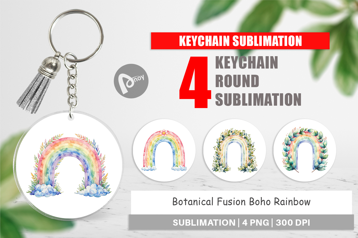 Sublimation Designs Diy Gift Idea Car Accessories Keychain Sublimation Plant Lover Gift Printable Keychain Round Keychain Png Boho Botanical Design Botanical Boho Rainbow Fusion Art Keychain
