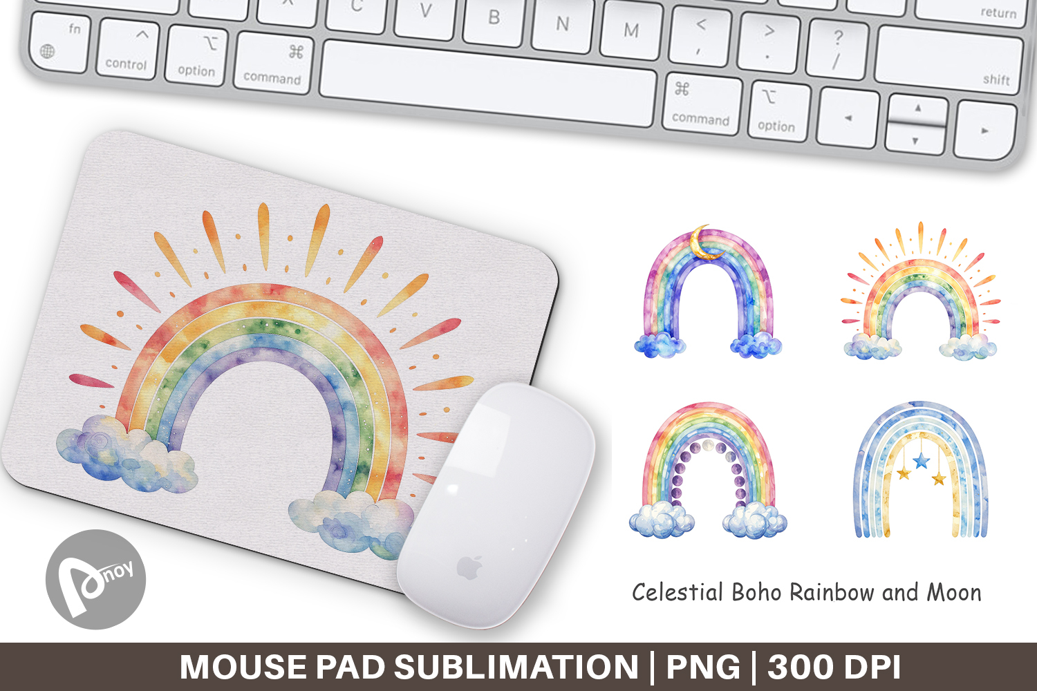 Sublimation Designs Diy Gift Idea Mouse Pad Sublimation Mouse Pad Png Printable Mouse Pad Celestial Office Decor Moon Phase Mouse Pad Celestial Moon Design Boho Rainbow Desk Mat Witchy Desk Gift