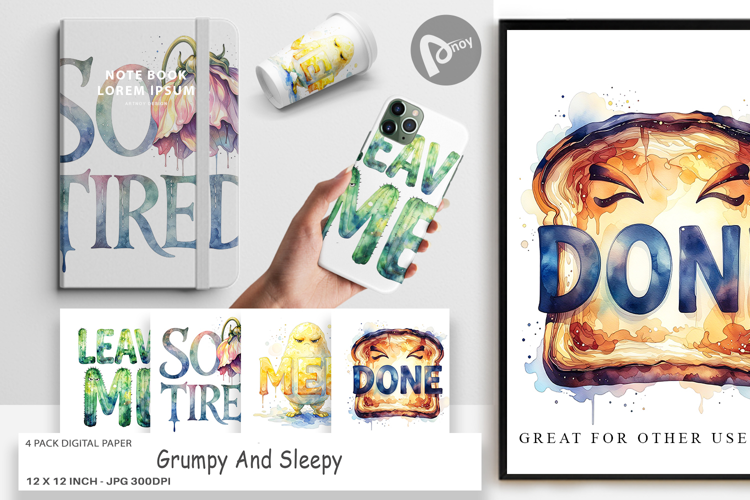 Digital Background Craft Paper Printable Scrapbook Paper Digital Paper Bundle Scrapbook Page Junk Journal Pages Sublimation Paper Background Grumpy Affirmations Sleepy Wonky Watercolor Mental Health Craft