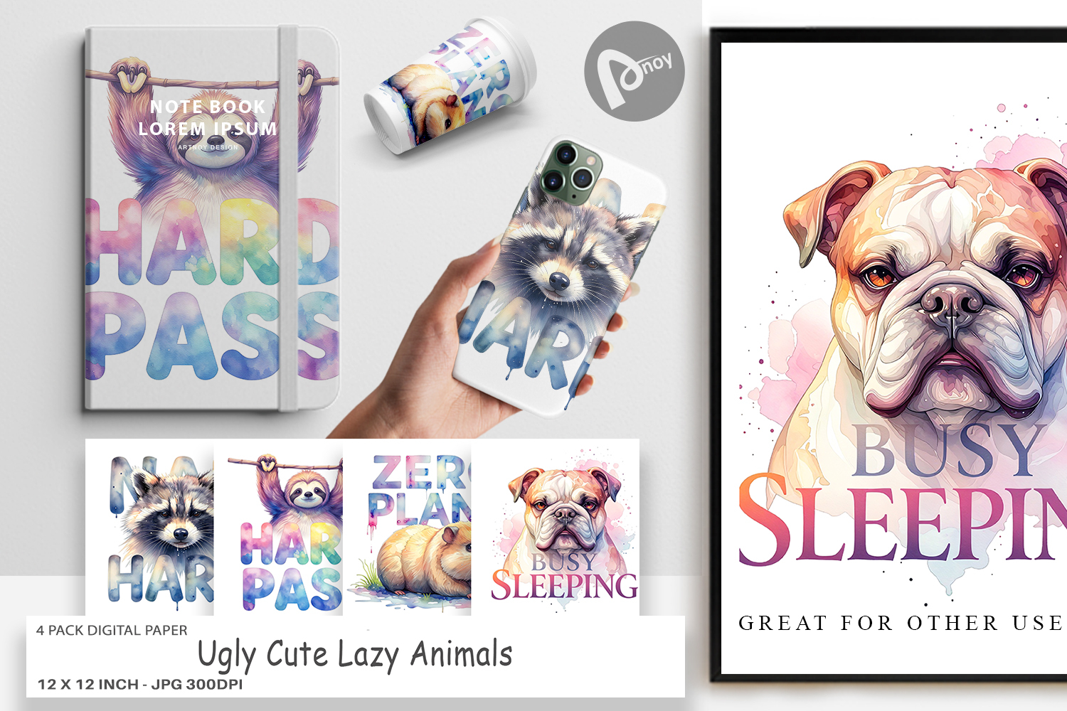 Similar Design Products to Ugly-Cute Lazy Animals Digital Paper