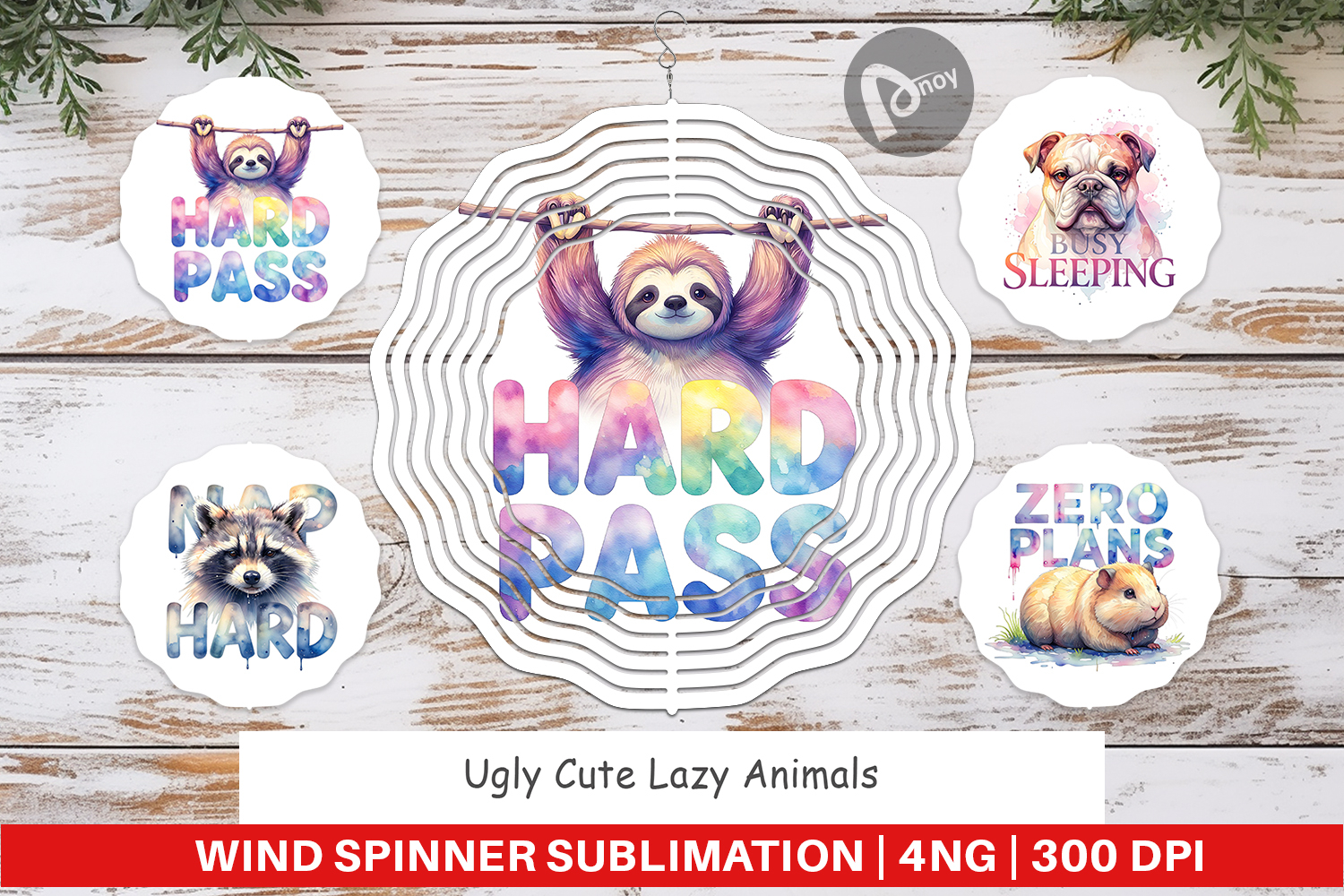 Watercolor Animals Sublimation Designs Animal Lover Gift Wind Spinner Sublimation Sublimation Spinner Design Lazy Animal Design Diy Garden Gift Printable Spinner Png Ugly Cute Animals Funny Lazy Gift