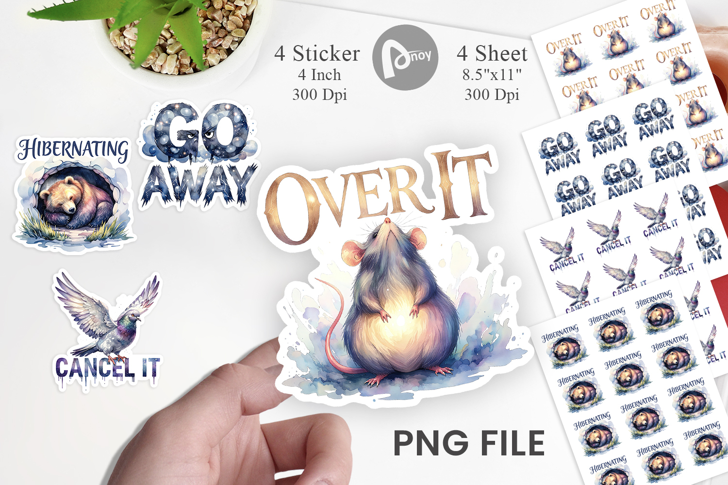 # Includes 4 individual PNG designs, 1200x1200 px (4"x4") at 300 dpi with a transparent background.