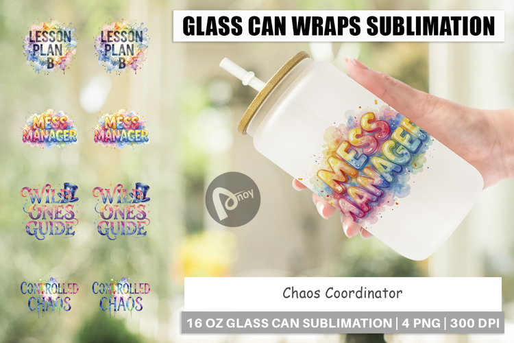 Chaos Coordinator Gift For Teacher Libbey Glass Sublimation Glass Can Wrap Png Printable Glass Wrap School Admin Gift Funny Classroom Art Teacher Management Diy Educator Gift Principal Iced Coffee