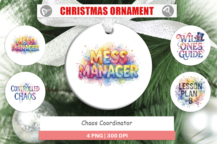 Chaos Coordinator Teacher Christmas Gift Diy Teacher Gift Ornament Design Png Printable Ornament Round Ornament Sublimation Funny Classroom School Admin Gift Teacher Management Principal Holiday Gift